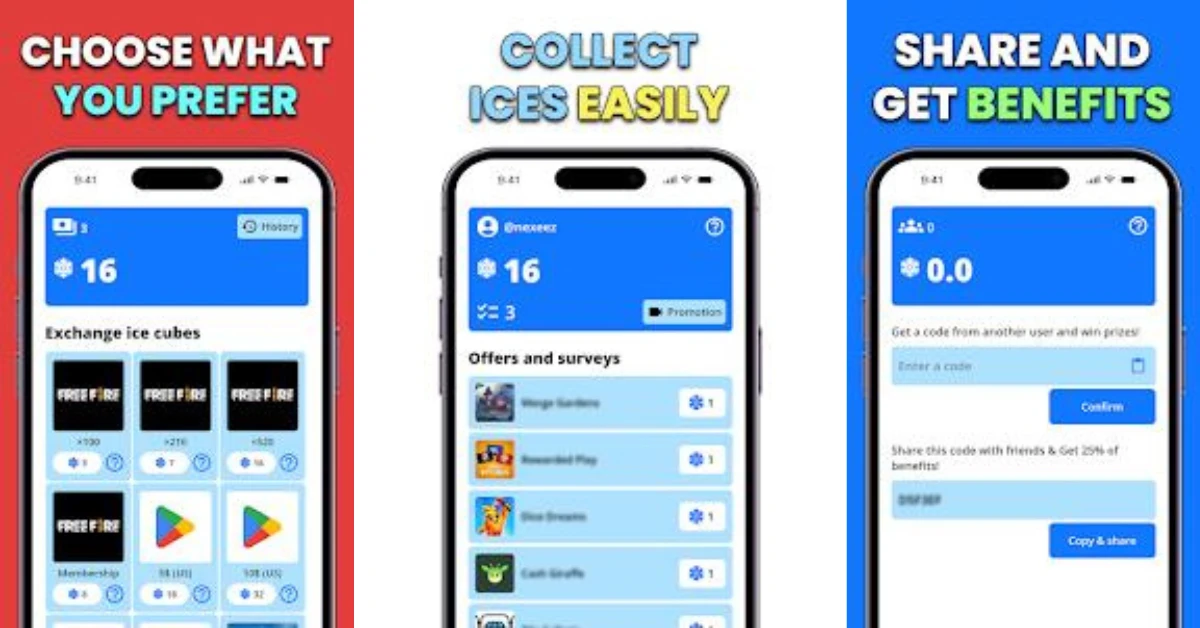 - مشاركة رابط الإحالة : يمكن للمستخدمين مشاركة رابط الإحالة الخاص بهم مع أصدقائهم وكلما تسجل الناس به كلما كسبتم قطع ثلج أكثر.